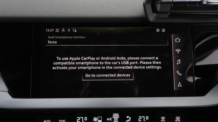 Our Audi A3 is finished in White. Specification includes a range of fantastic features including Leather Seats, Apple CarPlay, Digital Cockpit, Privacy Glass, Virtual Cockpit, Internet, Bluetooth, Parking Sensors, Touch Pad, Ambient Lighting Specification information is supplied by CAPHPI and may vary to the actual car. This data does not form any part of a buying contact. Please check specification prior to purchase in-store. The MOT is valid until March 2027, visit dealer's website for more photos, a 360 tour, service history and a free HPI report.