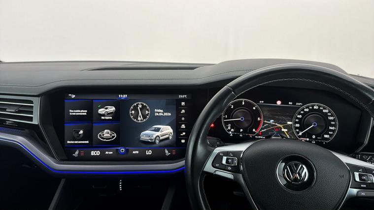 Our Volkswagen Touareg comes with optional extras worth £2, 340. Specification includes a range of fantastic features including Panoramic Roof, Leather Seats, Apple CarPlay, Adaptive Cruise Control, Privacy Glass, Gesture Tailgate, Gesture Control, Rear View Camera, Internet, Bluetooth Specification information is supplied by CAPHPI and may vary to the actual car. This data does not form any part of a buying contact. Please check specification prior to purchase in-store visit dealer's website for more photos, a 360 tour, service history and a free HPI report.
