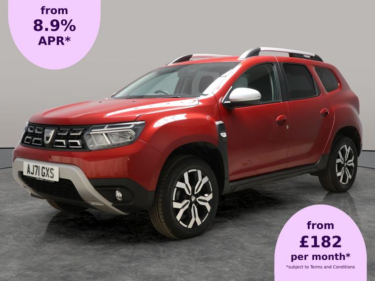 Discover the Dacia Duster in a vibrant red finish, packed with features and a stylish Black interior with Grey stitching. Enjoy seamless connectivity with Apple CarPlay and Bluetooth audio streaming, plus the convenience of keyless entry, reversing camera, and Sat Nav. Stay comfortable with heated seats and air conditioning, while LED headlights and 17in alloy wheels ensure you stand out. Drive with confidence thanks to Blind Spot Assist, selectable driving modes, and cruise control. A smart, practical SUV ready for any journey. 2 services recorded, last serviced on 14/11/2024 at 19, 599 miles. MOT to 18/10/2026. Visit our website for service history, online valuation, full vehicle specification plus multiple images. Any feature/option specified here is from 3rd party data. We cannot guarantee the accuracy of any specification supplied by a 3rd party. We recommend that you physically check the specification of the vehicle on site prior to purchase. This information does not form part of the buying contract. Terms & Conditions apply. We have over 2, 000 cars available from our 10 national branches, check our website to see all our stock. Our Trustpilot rating is 4.4/5 with over 9, 000 reviews.