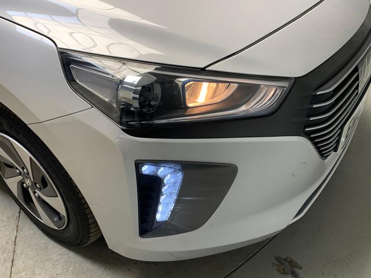 Experience eco-friendly driving with the Hyundai Ioniq Hybrid. This sleek silver hatchback features adaptive cruise control, reversing camera, and lane departure warning for a safe and relaxed journey. Enjoy smooth gear changes with its automatic transmission and paddle shift. Stay connected with Bluetooth, and keep comfortable with both air conditioning and climate control. The 15in alloy wheels and LED daytime running lights complete its modern look. Discover the perfect blend of efficiency and innovation with the Hyundai Ioniq. MOT to 27/06/2026. Visit our website for service history, online valuation, full vehicle specification plus multiple images. Any feature/option specified here is from 3rd party data. We cannot guarantee the accuracy of any specification supplied by a 3rd party. We recommend that you physically check the specification of the vehicle on site prior to purchase. This information does not form part of the buying contract. Terms & Conditions apply. We have over 2, 000 cars available from our 10 national branches, check our website to see all our stock. Our Trustpilot rating is 4.4/5 with over 9, 000 reviews.