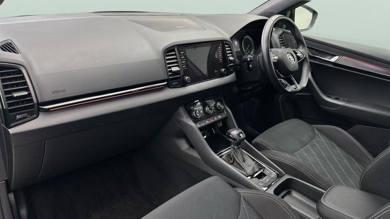 Experience comfort and technology in this black Skoda Karoq SportLine. Enjoy open skies with a panoramic sunroof, stay warm with heated seats and a heated steering wheel, and find your way easily with built-in touchscreen navigation and Satellite Navigation. Blind Spot Assist and a reversing camera make driving safer, while LED headlights keep every journey bright. The cabin boasts climate control, wireless phone charging, Apple CarPlay, SmartLink connectivity, and convenient keyless entry. 1 service recorded, last serviced on 20/04/2025 at 22, 921 miles. MOT to 09/03/2026. Visit our website for service history, online valuation, full vehicle specification plus multiple images. This vehicle is VAT qualifying. Any feature/option specified here is from 3rd party data. We cannot guarantee the accuracy of any specification supplied by a 3rd party. We recommend that you physically check the specification of the vehicle on site prior to purchase. This information does not form part of the buying contract. Terms & Conditions apply. We have over 2, 000 cars available from our 10 national branches, check our website to see all our stock. Our Trustpilot rating is 4.4/5 with over 9, 000 reviews.