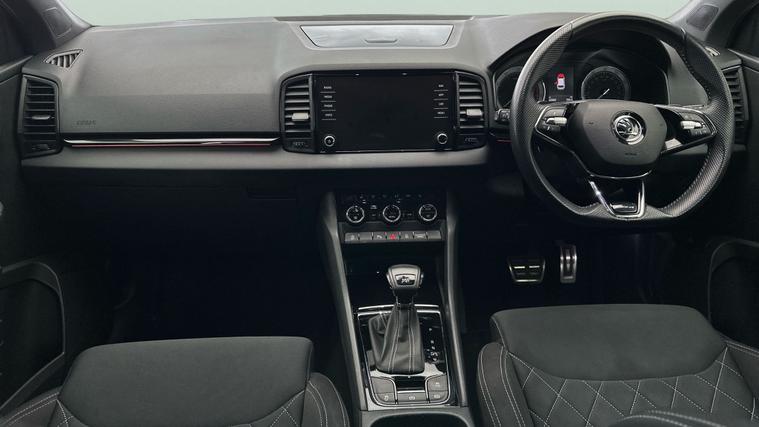 Experience comfort and technology in this black Skoda Karoq SportLine. Enjoy open skies with a panoramic sunroof, stay warm with heated seats and a heated steering wheel, and find your way easily with built-in touchscreen navigation and Satellite Navigation. Blind Spot Assist and a reversing camera make driving safer, while LED headlights keep every journey bright. The cabin boasts climate control, wireless phone charging, Apple CarPlay, SmartLink connectivity, and convenient keyless entry. 1 service recorded, last serviced on 20/04/2025 at 22, 921 miles. MOT to 09/03/2026. Visit our website for service history, online valuation, full vehicle specification plus multiple images. This vehicle is VAT qualifying. Any feature/option specified here is from 3rd party data. We cannot guarantee the accuracy of any specification supplied by a 3rd party. We recommend that you physically check the specification of the vehicle on site prior to purchase. This information does not form part of the buying contract. Terms & Conditions apply. We have over 2, 000 cars available from our 10 national branches, check our website to see all our stock. Our Trustpilot rating is 4.4/5 with over 9, 000 reviews.