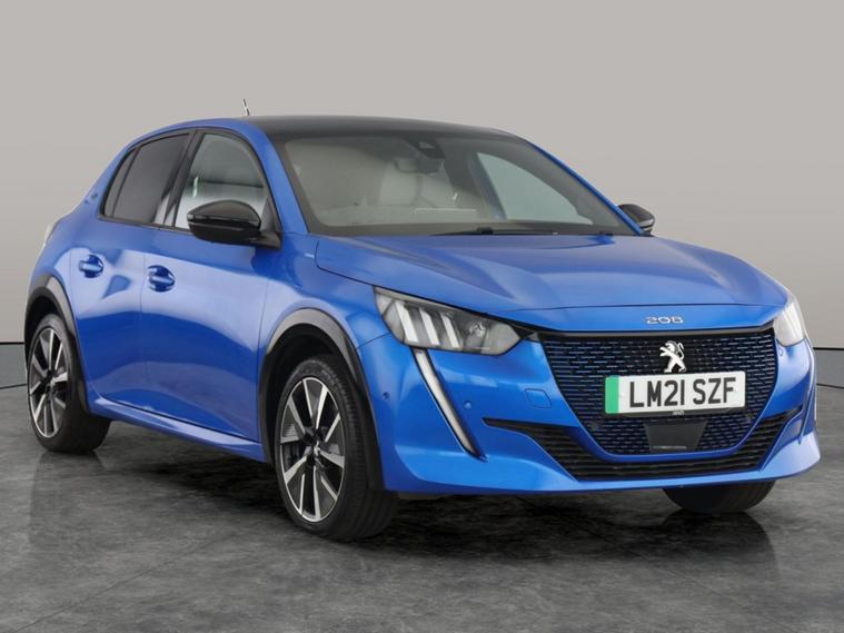 Experience electric driving in style with this blue Peugeot E-208 GT. Enjoy premium comfort with Alcantara heated seats and a convenient wireless charger. Stay connected with Apple CarPlay and sat nav, while the head-up display keeps vital info at your fingertips. Parking is a breeze with Park Assist, reversing camera, and blind spot assist. LED headlights, cruise control, and dual zone digital climate control complete the impressive package. Discover effortless urban travel today. 1 service recorded, last serviced on 09/08/2025 at 31, 843 miles. MOT to 09/06/2026. Visit our website for service history, online valuation, full vehicle specification plus multiple images. This vehicle is VAT qualifying. Any feature/option specified here is from 3rd party data. We cannot guarantee the accuracy of any specification supplied by a 3rd party. We recommend that you physically check the specification of the vehicle on site prior to purchase. This information does not form part of the buying contract. Terms & Conditions apply. We have over 2, 000 cars available from our 10 national branches, check our website to see all our stock. Our Trustpilot rating is 4.4/5 with over 9, 000 reviews.