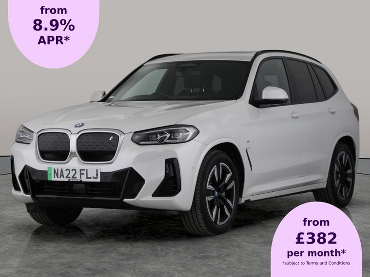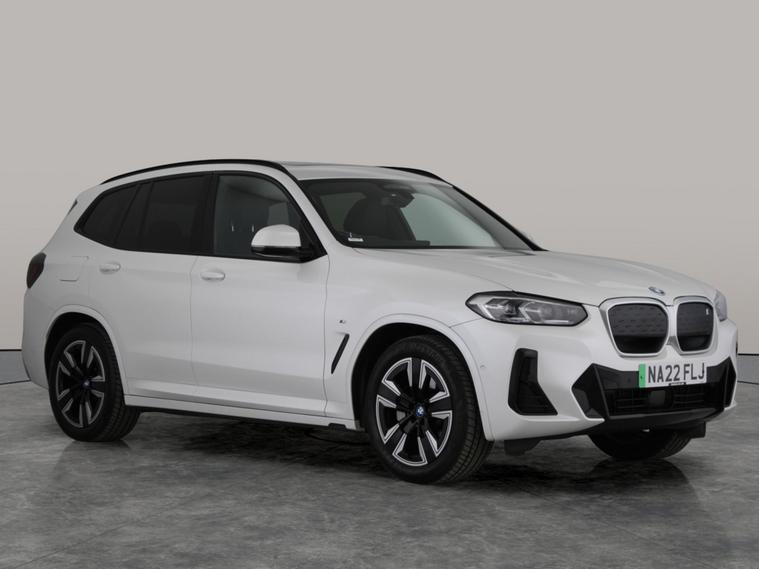 Experience premium electric driving with this BMW iX3 M Sport. Step inside to enjoy a panoramic sunroof, luxurious Vernasca leather seats and a heated steering wheel for those colder mornings. Stay safe and relaxed on the road with Driving Assistant, Park Assist, and a reversing camera. LED headlights and adaptive M Sport suspension bring style and comfort to every journey. The BMW Live Cockpit Professional rounds out your sophisticated driving environment. Discover electric luxury and innovation in a stunning SUV. 1 service recorded, last serviced on 01/05/2024 at 19, 835 miles. MOT to 03/05/2026. Visit our website for service history, online valuation, full vehicle specification plus multiple images. Certain features listed may be available via subscription packages at extra costs, please consult with BMW for details. This vehicle is VAT qualifying. Any feature/option specified here is from 3rd party data. We cannot guarantee the accuracy of any specification supplied by a 3rd party. We recommend that you physically check the specification of the vehicle on site prior to purchase. This information does not form part of the buying contract. Terms & Conditions apply. We have over 2, 000 cars available from our 10 national branches, check our website to see all our stock. Our Trustpilot rating is 4.4/5 with over 9, 000 reviews.
