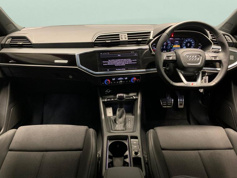 Discover the Audi Q3 Sportback in stunning silver, packed with impressive features. Enjoy the open-sky feel with a panoramic roof and sunroof, while the Comfort and Sound Package ensures every journey is a pleasure. Stay connected with Apple CarPlay, Bluetooth, and advanced MMI Navigation Plus. The black styling package adds a sporty edge, complemented by luxurious Alcantara interiors. Lane departure warning and selectable driving modes offer added reassurance and fun. With keyless entry and advanced key, convenience is at your fingertips. Experience hybrid technology with Audi style and innovation. 1 service recorded, last serviced on 07/08/2023 at 7, 765 miles. MOT to 09/11/2026. Visit our website for service history, online valuation, full vehicle specification plus multiple images. Certain features listed may be available via subscription packages at extra costs, please consult with Audi for details. This vehicle is VAT qualifying. Any feature/option specified here is from 3rd party data. We cannot guarantee the accuracy of any specification supplied by a 3rd party. We recommend that you physically check the specification of the vehicle on site prior to purchase. This information does not form part of the buying contract. Terms & Conditions apply. We have over 2, 000 cars available from our 10 national branches, check our website to see all our stock. Our Trustpilot rating is 4.4/5 with over 9, 000 reviews.