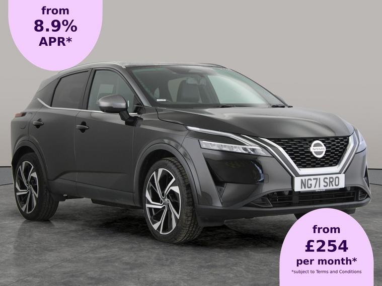 Experience comfort and innovation with this black Nissan Qashqai. Enjoy a panoramic glass roof, heated front seats, and a heated steering wheel for a touch of luxury. The advanced Head-Up Display and 360-degree Around View Monitor make every drive effortless. Listen to your favourite music on the premium BOSE sound system and stay seamlessly connected with Apple CarPlay. LED headlights light the way, while the built-in sat nav guides you to your next adventure. This Qashqai blends practical SUV style with modern hybrid efficiency. 2 services recorded, last serviced on 16/08/2024 at 24, 112 miles. MOT to 24/04/2026. Visit our website for service history, online valuation, full vehicle specification plus multiple images. Any feature/option specified here is from 3rd party data. We cannot guarantee the accuracy of any specification supplied by a 3rd party. We recommend that you physically check the specification of the vehicle on site prior to purchase. This information does not form part of the buying contract. Terms & Conditions apply. We have over 2, 000 cars available from our 10 national branches, check our website to see all our stock. Our Trustpilot rating is 4.4/5 with over 9, 000 reviews.
