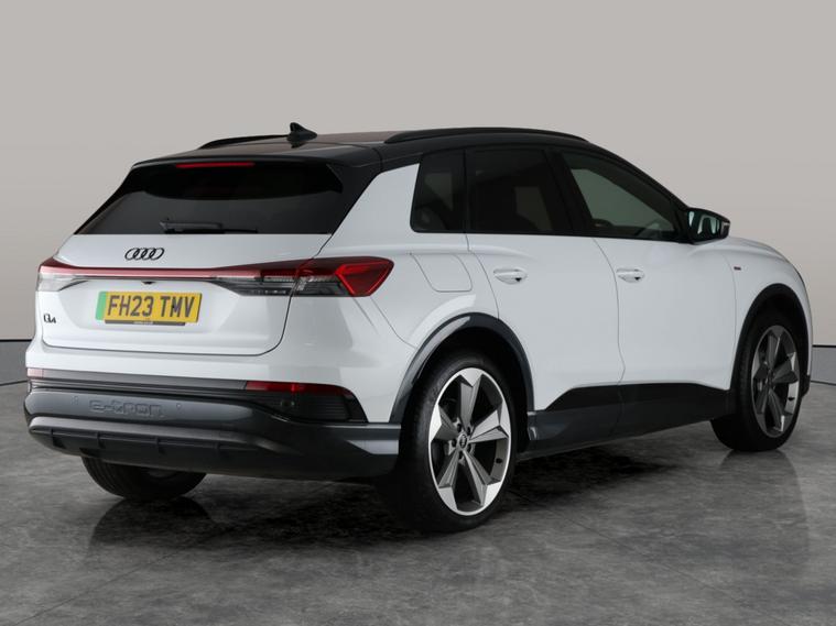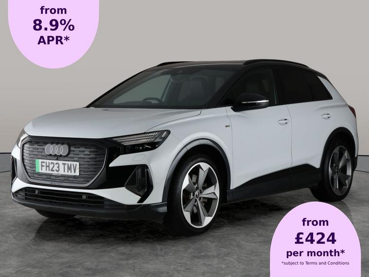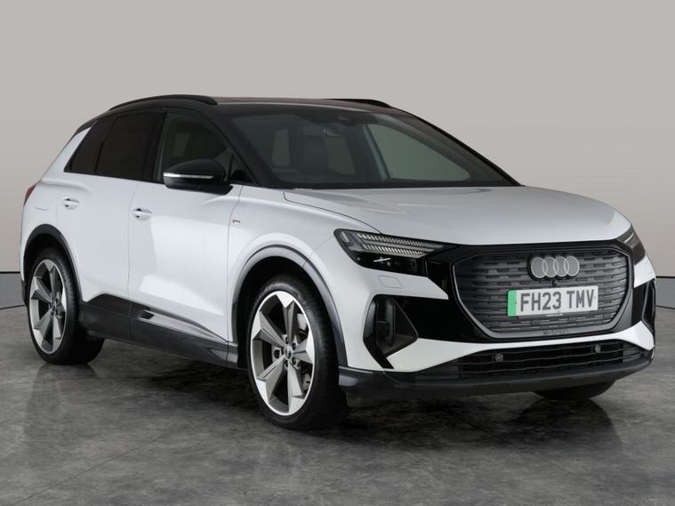 Discover the Audi Q4 E-tron 40, finished in sleek white with the exclusive Black Styling Package. Enjoy a panoramic roof, heated leather seats, and the convenience of keyless entry with Advanced Key. The Technology Package includes MMI Navigation Plus, Apple CarPlay, and adaptive cruise control for flawless journeys. LED headlights illuminate your drive, while the reversing camera makes parking effortless. Experience modern luxury and impressive electric power with this premium SUV. 1 service recorded, last serviced on 13/08/2025 at 31, 883 miles. MOT to 08/08/2026. Visit our website for service history, online valuation, full vehicle specification plus multiple images. Certain features listed may be available via subscription packages at extra costs, please consult with Audi for details. This vehicle is VAT qualifying. Any feature/option specified here is from 3rd party data. We cannot guarantee the accuracy of any specification supplied by a 3rd party. We recommend that you physically check the specification of the vehicle on site prior to purchase. This information does not form part of the buying contract. Terms & Conditions apply. We have over 2, 000 cars available from our 10 national branches, check our website to see all our stock. Our Trustpilot rating is 4.4/5 with over 9, 000 reviews.