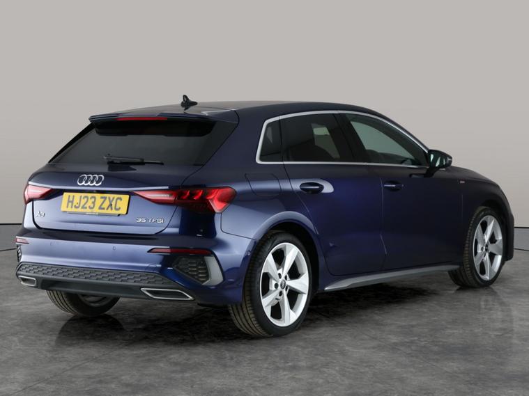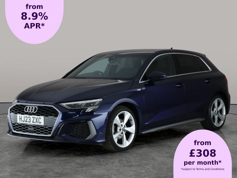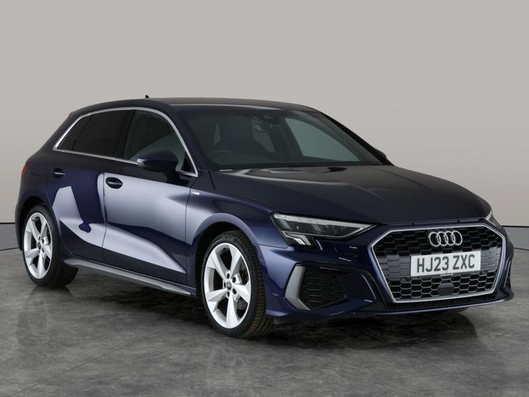 Experience the dynamic Audi A3 S Line with the sought-after Technology Pack Pro, featuring MMI Navigation Plus and crisp Apple CarPlay. Enjoy a premium feel with heated leather S-Line embossed front sport seats, LED headlights, and a clear reversing camera. Stay safe and connected with a lane departure warning system, Bluetooth audio streaming, and cruise control. Enjoy sporty handling with selectable driving modes, all in a stylish blue hatchback. The perfect blend of excitement, comfort and advanced tech awaits. 1 service recorded, last serviced on 23/05/2025 at 15, 496 miles. MOT to 21/06/2026. Visit our website for service history, online valuation, full vehicle specification plus multiple images. Certain features listed may be available via subscription packages at extra costs, please consult with Audi for details. This vehicle is VAT qualifying. Any feature/option specified here is from 3rd party data. We cannot guarantee the accuracy of any specification supplied by a 3rd party. We recommend that you physically check the specification of the vehicle on site prior to purchase. This information does not form part of the buying contract. Terms & Conditions apply. We have over 2, 000 cars available from our 10 national branches, check our website to see all our stock. Our Trustpilot rating is 4.4/5 with over 9, 000 reviews.