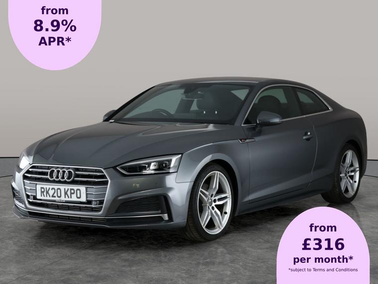 Experience driving pleasure in this stylish grey Audi A5 Coupe with stunning LED headlights and heated seats for ultimate comfort. Enjoy seamless journeys with MMI Navigation Plus, Apple CarPlay, and Bluetooth audio streaming. With cruise control, driving modes, 3 zone climate control, and a digital display, every drive feels special. Front and rear parking sensors make city parking easy, while paddle shift gears add a sporty touch. Elevate your drive with this stunning Audi A5. 5 services recorded, last serviced on 07/09/2025 at 19, 610 miles. MOT to 17/06/2026. Visit our website for service history, online valuation, full vehicle specification plus multiple images. Certain features listed may be available via subscription packages at extra costs, please consult with Audi for details. Any feature/option specified here is from 3rd party data. We cannot guarantee the accuracy of any specification supplied by a 3rd party. We recommend that you physically check the specification of the vehicle on site prior to purchase. This information does not form part of the buying contract. Terms & Conditions apply. We have over 2, 000 cars available from our 10 national branches, check our website to see all our stock. Our Trustpilot rating is 4.4/5 with over 9, 000 reviews.