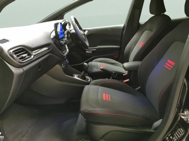 Experience sporty driving with this sleek black Ford Fiesta ST-Line. Enjoy added comfort with striking Black-Red cloth seats featuring red stitching, and stay connected through Ford SYNC3 with Sat Nav. LED headlights light the way, while 17in alloys add a bold presence. Safety and convenience are covered with Lane Departure Warning, Traffic Sign Recognition, Cruise Control, Keyless Start, and Ford MyKey. This is a stylish, technology-packed hatchback ready to impress. 1 service recorded, last serviced on 11/09/2024 at 10, 861 miles. MOT to 23/09/2026. Visit our website for service history, online valuation, full vehicle specification plus multiple images. This vehicle is VAT qualifying. Any feature/option specified here is from 3rd party data. We cannot guarantee the accuracy of any specification supplied by a 3rd party. We recommend that you physically check the specification of the vehicle on site prior to purchase. This information does not form part of the buying contract. Terms & Conditions apply. We have over 2, 000 cars available from our 10 national branches, check our website to see all our stock. Our Trustpilot rating is 4.4/5 with over 9, 000 reviews.