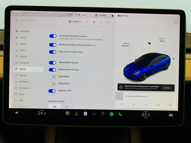 Experience the future of driving with this blue Tesla Model 3. Enjoy the open skies with a panoramic roof and sunroof, while heated seats and a heated steering wheel keep every journey comfortable. Stay confident on the road with Adaptive Cruise Control, Active Lane Assist, Blind Spot Assist and Park Assist. Keyless entry and a reversing camera add convenience, and LED headlights light the way ahead. Navigate with ease thanks to built-in Sat Nav and wifi connectivity. 1 service recorded, last serviced on 02/10/2025 at 24, 732 miles. MOT to 02/10/2026. Visit our website for service history, online valuation, full vehicle specification plus multiple images. Any feature/option specified here is from 3rd party data. We cannot guarantee the accuracy of any specification supplied by a 3rd party. We recommend that you physically check the specification of the vehicle on site prior to purchase. This information does not form part of the buying contract. Terms & Conditions apply. We have over 2, 000 cars available from our 10 national branches, check our website to see all our stock. Our Trustpilot rating is 4.4/5 with over 9, 000 reviews.