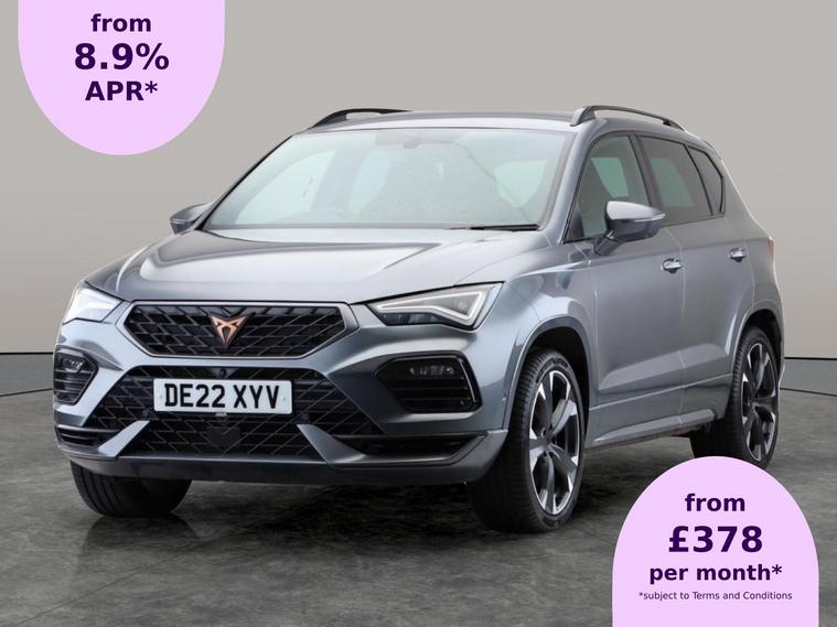 Step into excitement with this Cupra Ateca. Enjoy effortless access with keyless entry, park with confidence using park assist, front and rear sensors, and a reversing camera. Stay comfortable whatever the weather thanks to climate control, air conditioning, and a heated steering wheel. The advanced sat nav keeps you on track, while paddle shift and cruise control make every drive a pleasure. Finished in striking grey with sporty 19in alloy wheels, this SUV is practical, powerful and packed with premium features. 1 service recorded, last serviced on 16/07/2025 at 27, 913 miles. MOT to 19/07/2026. Visit our website for service history, online valuation, full vehicle specification plus multiple images. This vehicle is VAT qualifying. Any feature/option specified here is from 3rd party data. We cannot guarantee the accuracy of any specification supplied by a 3rd party. We recommend that you physically check the specification of the vehicle on site prior to purchase. This information does not form part of the buying contract. Terms & Conditions apply. We have over 2, 000 cars available from our 10 national branches, check our website to see all our stock. Our Trustpilot rating is 4.4/5 with over 9, 000 reviews.
