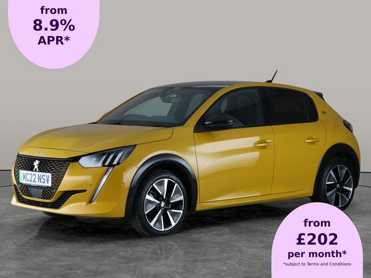 Stand out from the crowd with this stunning yellow Peugeot E-208 GT. Enjoy advanced comfort features like Alcantara trim, adaptive cruise control, and a brilliant head-up display. LED headlights and LED daytime running lights add a modern touch, while the 17in alloy wheels complete the sporty look. Stay connected with Apple CarPlay, sat nav, and Bluetooth, and drive with extra confidence thanks to blind spot assist, park assist, and a reversing camera. The perfect blend of electric performance and distinctive style. 2 services recorded, last serviced on 23/08/2024 at 8, 369 miles. MOT to 22/09/2026. Visit our website for service history, online valuation, full vehicle specification plus multiple images. This vehicle is VAT qualifying. Any feature/option specified here is from 3rd party data. We cannot guarantee the accuracy of any specification supplied by a 3rd party. We recommend that you physically check the specification of the vehicle on site prior to purchase. This information does not form part of the buying contract. Terms & Conditions apply. We have over 2, 000 cars available from our 10 national branches, check our website to see all our stock. Our Trustpilot rating is 4.4/5 with over 9, 000 reviews.