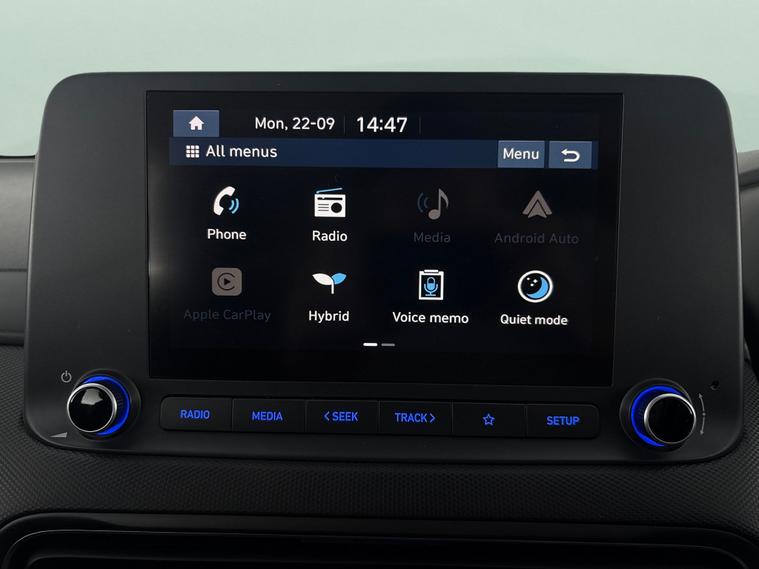 Experience the stylish Hyundai Kona, a sleek black SUV with the latest tech. Enjoy seamless connectivity with Apple CarPlay, wireless audio streaming, and built-in WiFi. Drive confidently with a reversing camera, Lane Departure Warning, and LED daytime running lights. Comfort comes as standard with digital climate control and cruise control for relaxed journeys. The impressive 16in alloy wheels add an eye-catching finish to this well-equipped hybrid, perfect for modern adventures. 2 services recorded, last serviced on 04/02/2025 at 23, 028 miles. MOT to 24/09/2026. Visit our website for service history, online valuation, full vehicle specification plus multiple images. This vehicle is VAT qualifying. Any feature/option specified here is from 3rd party data. We cannot guarantee the accuracy of any specification supplied by a 3rd party. We recommend that you physically check the specification of the vehicle on site prior to purchase. This information does not form part of the buying contract. Terms & Conditions apply. We have over 2, 000 cars available from our 10 national branches, check our website to see all our stock. Our Trustpilot rating is 4.4/5 with over 9, 000 reviews.
