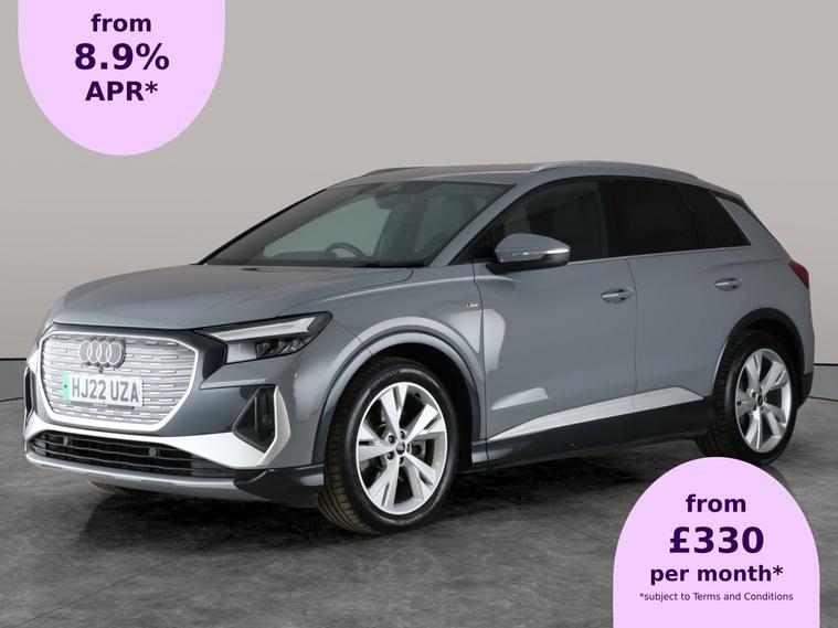 Experience electric excellence with this Audi Q4 E-tron. Enjoy the added luxury of the Comfort and Sound Package, offering extra convenience and premium touches. Travel in style on striking 20in alloy wheels, while LED headlights and daytime running lights ensure you stand out day or night. Stay connected and in control with MMI Navigation Plus, heated seats, adaptive driving modes, cruise control, and advanced safety features like lane departure warning and traffic sign recognition. This grey SUV is the perfect mix of innovation and comfort. 1 service recorded, last serviced on 29/04/2024 at 43, 420 miles. MOT to 28/07/2026. Visit our website for service history, online valuation, full vehicle specification plus multiple images. Certain features listed may be available via subscription packages at extra costs, please consult with Audi for details. Any feature/option specified here is from 3rd party data. We cannot guarantee the accuracy of any specification supplied by a 3rd party. We recommend that you physically check the specification of the vehicle on site prior to purchase. This information does not form part of the buying contract. Terms & Conditions apply. We have over 2, 000 cars available from our 10 national branches, check our website to see all our stock. Our Trustpilot rating is 4.4/5 with over 9, 000 reviews.