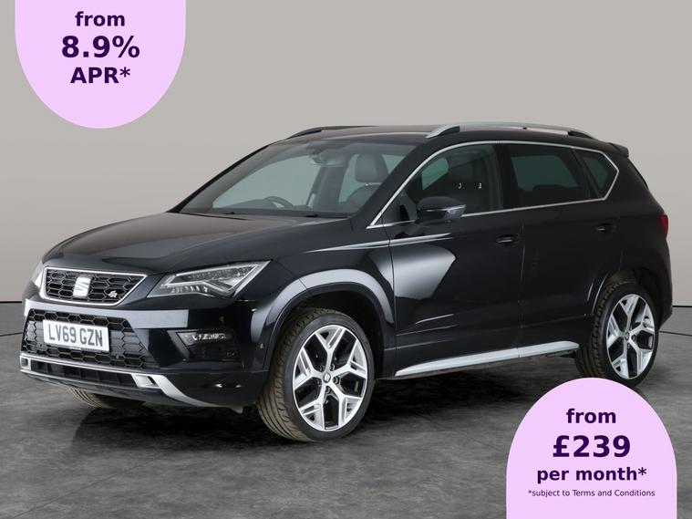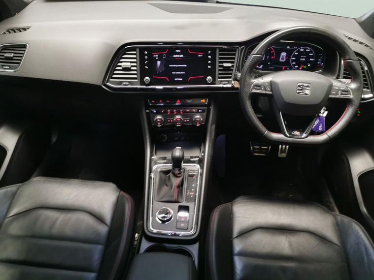 Stand out in this stylish black Seat Ateca FR Sport SUV with sleek 19in alloy wheels and striking LED headlights. Enjoy ultimate comfort with heated seats, a driver electric seat, and climate control. Effortless city and motorway driving with Park Assist, front and rear parking sensors, cruise control, and paddle shift. The built-in sat nav ensures youre always on the right track, while LED daytime running lights enhance your safety and presence on any road. All underpinned by smooth automatic performance. 4 services recorded, last serviced on 22/09/2025 at 36, 522 miles. MOT to 11/07/2026. Visit our website for service history, online valuation, full vehicle specification plus multiple images. Any feature/option specified here is from 3rd party data. We cannot guarantee the accuracy of any specification supplied by a 3rd party. We recommend that you physically check the specification of the vehicle on site prior to purchase. This information does not form part of the buying contract. Terms & Conditions apply. We have over 2, 000 cars available from our 10 national branches, check our website to see all our stock. Our Trustpilot rating is 4.4/5 with over 9, 000 reviews.