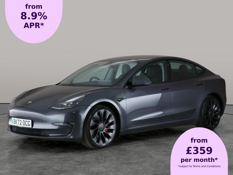 Experience the thrill of the Tesla Model 3 Performance with its panoramic roof, sunroof, and an advanced surround view system featuring a 360-degree camera. Stay effortlessly connected with Apple CarPlay, while keyless entry and Park Assist add to the convenience. Adaptive cruise control, active lane assist, and four zone climate control ensure every drive is smooth and comfortable. LED headlights and adaptive lighting complete this electric saloons dynamic look and premium feel. 1 service recorded, last serviced on 25/09/2025 at 55, 648 miles. MOT to 23/09/2026. Visit our website for service history, online valuation, full vehicle specification plus multiple images. This vehicle is VAT qualifying. Any feature/option specified here is from 3rd party data. We cannot guarantee the accuracy of any specification supplied by a 3rd party. We recommend that you physically check the specification of the vehicle on site prior to purchase. This information does not form part of the buying contract. Terms & Conditions apply. We have over 2, 000 cars available from our 10 national branches, check our website to see all our stock. Our Trustpilot rating is 4.4/5 with over 9, 000 reviews.