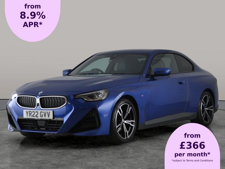 Experience the thrill of the BMW 2 Series Coupe, finished in striking blue with luxurious Alcantara trim and sleek aluminium detailing. Enjoy privacy and style with rear sun protection glass, and comfort every drive with heated seats, heated steering wheel, comfort pack and front lumbar support. Stay seamlessly connected with Apple CarPlay and BMW Live Cockpit Professional, while adaptive LED headlights and acoustic glazing add a touch of modern sophistication. Keyless entry and electric seats complete the premium package. 4 services recorded, last serviced on 26/09/2025 at 37, 598 miles. MOT to 25/09/2026. Visit our website for service history, online valuation, full vehicle specification plus multiple images. Certain features listed may be available via subscription packages at extra costs, please consult with BMW for details. Any feature/option specified here is from 3rd party data. We cannot guarantee the accuracy of any specification supplied by a 3rd party. We recommend that you physically check the specification of the vehicle on site prior to purchase. This information does not form part of the buying contract. Terms & Conditions apply. We have over 2, 000 cars available from our 10 national branches, check our website to see all our stock. Our Trustpilot rating is 4.4/5 with over 9, 000 reviews.