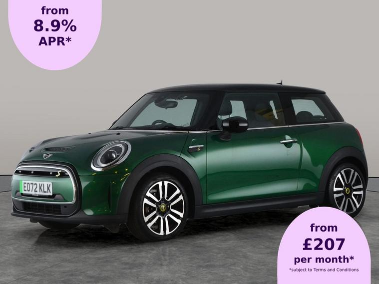 Stand out in this stylish green Mini Electric Hatch Cooper SE, combining go-kart handling with everyday practicality. Enjoy the upgraded 17in Rail Spoke wheels, slick Black roof and mirror caps, and comfortable Cloth-Leatherette Black Pearl seats. Keyless entry and heated seats add comfort, while LED headlights ensure great visibility. Parking is a breeze with the reversing camera, and navigation, digital displays, and multiple driving modes make every journey intuitive and fun. Experience the fun of electric driving with Mini flair. 1 service recorded, last serviced on 24/08/2024 at 17, 179 miles. MOT to 20/09/2026. Visit our website for service history, online valuation, full vehicle specification plus multiple images. This vehicle is VAT qualifying. Any feature/option specified here is from 3rd party data. We cannot guarantee the accuracy of any specification supplied by a 3rd party. We recommend that you physically check the specification of the vehicle on site prior to purchase. This information does not form part of the buying contract. Terms & Conditions apply. We have over 2, 000 cars available from our 10 national branches, check our website to see all our stock. Our Trustpilot rating is 4.4/5 with over 9, 000 reviews.