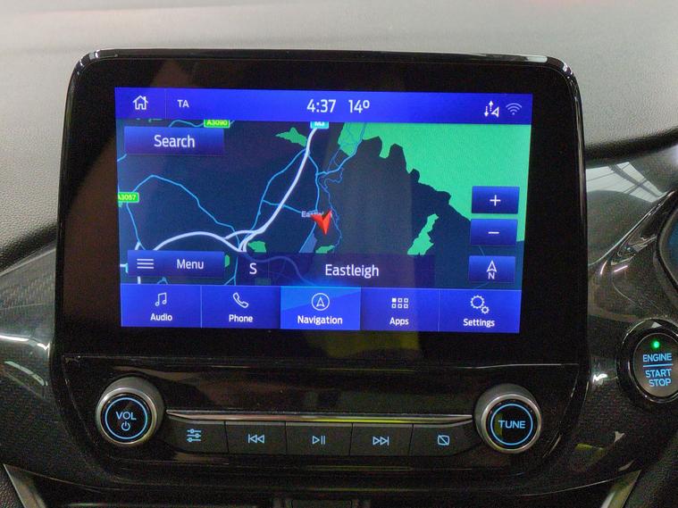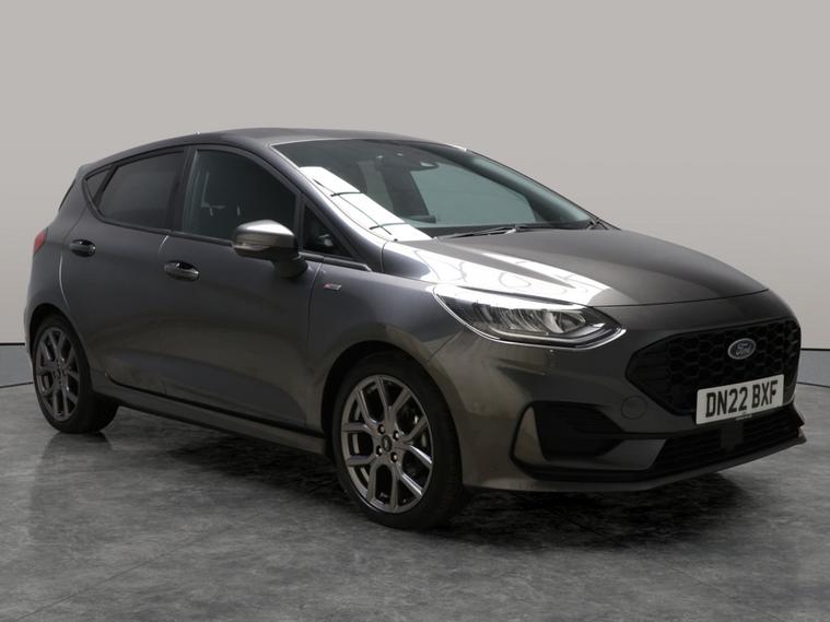 Step into style with this Ford Fiesta ST-Line in striking grey, featuring eye-catching black-red cloth seats with red stitching. Enjoy your drive with Apple CarPlay, built-in Sat Nav, and Ford SYNC connectivity. Bright LED headlights and 17in alloy wheels complete the sporty look. Safety is covered with lane departure warning, cruise control, and traffic sign recognition. Keyless start adds convenience, making every trip effortless and fun. Drive the perfect blend of tech and comfort with this petrol hybrid Fiesta. 1 service recorded, last serviced on 12/07/2024 at 10, 389 miles. MOT to 30/05/2026. Visit our website for service history, online valuation, full vehicle specification plus multiple images. This vehicle is VAT qualifying. Any feature/option specified here is from 3rd party data. We cannot guarantee the accuracy of any specification supplied by a 3rd party. We recommend that you physically check the specification of the vehicle on site prior to purchase. This information does not form part of the buying contract. Terms & Conditions apply. We have over 2, 000 cars available from our 10 national branches, check our website to see all our stock. Our Trustpilot rating is 4.4/5 with over 9, 000 reviews.