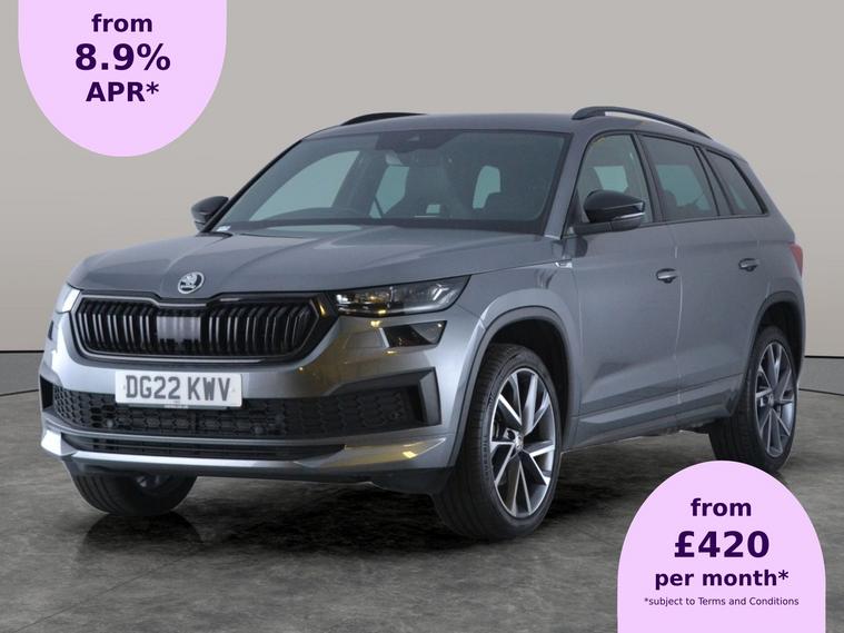 Experience the Skoda Kodiaq SportLine, an impressive 7-seater SUV in stylish grey. Enjoy luxurious heated seats, a drivers electric seat with memory, and a sophisticated light package including LED headlights. Stay effortlessly connected with Skoda Columbus touchscreen navigation, Apple CarPlay, and Bluetooth audio streaming. Keyless entry and a reversing camera make every journey a breeze, while SmartLink and cruise control add extra comfort and convenience. Discover space, style, and advanced technology in one dynamic family SUV. 3 services recorded, last serviced on 11/06/2025 at 28, 077 miles. MOT to 23/06/2026. Visit our website for service history, online valuation, full vehicle specification plus multiple images. Any feature/option specified here is from 3rd party data. We cannot guarantee the accuracy of any specification supplied by a 3rd party. We recommend that you physically check the specification of the vehicle on site prior to purchase. This information does not form part of the buying contract. Terms & Conditions apply. We have over 2, 000 cars available from our 10 national branches, check our website to see all our stock. Our Trustpilot rating is 4.4/5 with over 9, 000 reviews.