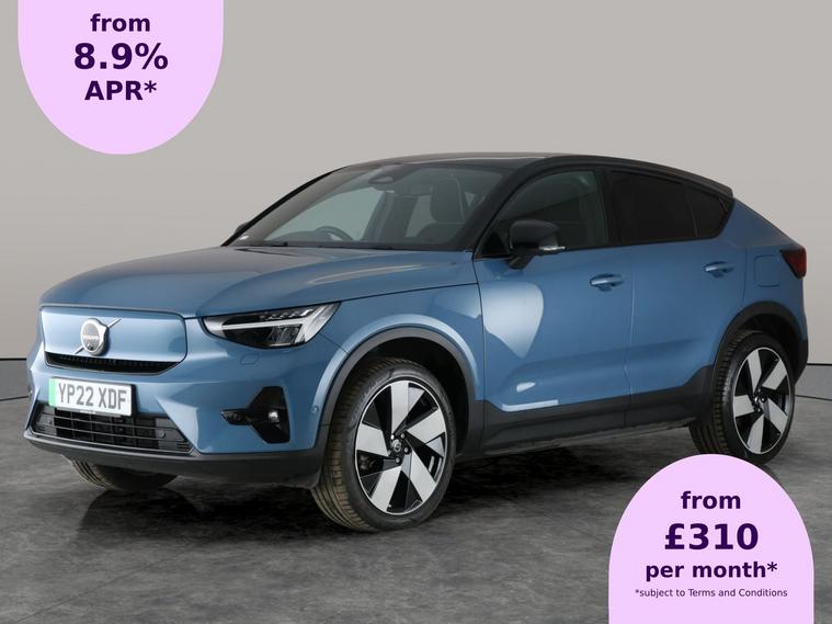Experience pure electric driving in this striking blue Volvo C40 SUV. Enjoy the views with a panoramic sunroof and relax in Charcoal Connect Textile-Microtech seats. Stay entertained with the premium Harman/Kardon sound system and navigate every journey confidently with surround view and park assist. LED headlights ensure clear vision, while heated leather seats and steering wheel add a touch of luxury. Safety is enhanced with adaptive cruise control, lane departure warning, and advanced driver assist technologies. 3 services recorded, last serviced on 01/10/2025 at 33, 150 miles. MOT to 18/05/2026. Visit our website for service history, online valuation, full vehicle specification plus multiple images. This vehicle is VAT qualifying. Any feature/option specified here is from 3rd party data. We cannot guarantee the accuracy of any specification supplied by a 3rd party. We recommend that you physically check the specification of the vehicle on site prior to purchase. This information does not form part of the buying contract. Terms & Conditions apply. We have over 2, 000 cars available from our 10 national branches, check our website to see all our stock. Our Trustpilot rating is 4.4/5 with over 9, 000 reviews.
