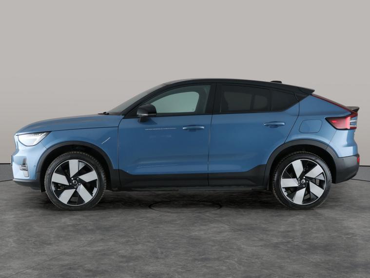 Experience pure electric driving in this striking blue Volvo C40 SUV. Enjoy the views with a panoramic sunroof and relax in Charcoal Connect Textile-Microtech seats. Stay entertained with the premium Harman/Kardon sound system and navigate every journey confidently with surround view and park assist. LED headlights ensure clear vision, while heated leather seats and steering wheel add a touch of luxury. Safety is enhanced with adaptive cruise control, lane departure warning, and advanced driver assist technologies. 3 services recorded, last serviced on 01/10/2025 at 33, 150 miles. MOT to 18/05/2026. Visit our website for service history, online valuation, full vehicle specification plus multiple images. This vehicle is VAT qualifying. Any feature/option specified here is from 3rd party data. We cannot guarantee the accuracy of any specification supplied by a 3rd party. We recommend that you physically check the specification of the vehicle on site prior to purchase. This information does not form part of the buying contract. Terms & Conditions apply. We have over 2, 000 cars available from our 10 national branches, check our website to see all our stock. Our Trustpilot rating is 4.4/5 with over 9, 000 reviews.