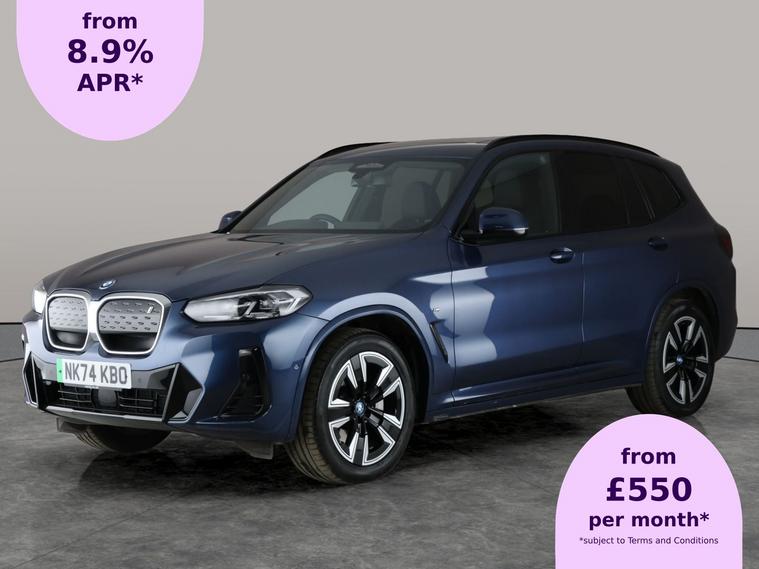 Experience the thrill of the BMW iX3 M Sport, finished in stunning blue with a panoramic roof and sunroof for a bright, spacious drive. Enjoy seamless journeys with adaptive cruise control, active lane assist, and park assist, all complemented by a reversing camera and LED headlights. Settle into luxurious Vernasca leather heated seats and let the adaptive M Sport suspension deliver dynamic comfort. Stay connected with Apple CarPlay and sat nav, and enjoy safe driving with the comprehensive Driving Assistant suite. This electric SUV is ready for your next adventure. MOT to 02/10/2027. Visit our website for service history, online valuation, full vehicle specification plus multiple images. Certain features listed may be available via subscription packages at extra costs, please consult with BMW for details. This vehicle is VAT qualifying. Any feature/option specified here is from 3rd party data. We cannot guarantee the accuracy of any specification supplied by a 3rd party. We recommend that you physically check the specification of the vehicle on site prior to purchase. This information does not form part of the buying contract. Terms & Conditions apply. We have over 2, 000 cars available from our 10 national branches, check our website to see all our stock. Our Trustpilot rating is 4.4/5 with over 9, 000 reviews.