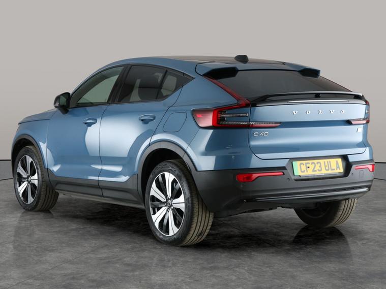 Experience the future of driving with this electric Volvo C40 Recharge SUV in stylish blue, featuring exclusive charcoal textile City Canvas interior. Enjoy the airy feel of a panoramic roof and sunroof, top-level comfort with heated seats and steering wheel, plus cutting-edge convenience with keyless entry and advanced park assist. Stay connected via Apple CarPlay and safe with adaptive cruise control, blind spot assist, and lane departure warning. Cruise in style on stunning 19in diamond cut wheels and enjoy every journey with built-in sat nav and climate pack. 2 services recorded, last serviced on 04/10/2025 at 19, 887 miles. MOT to 11/07/2026. Visit our website for service history, online valuation, full vehicle specification plus multiple images. This vehicle is VAT qualifying. Any feature/option specified here is from 3rd party data. We cannot guarantee the accuracy of any specification supplied by a 3rd party. We recommend that you physically check the specification of the vehicle on site prior to purchase. This information does not form part of the buying contract. Terms & Conditions apply. We have over 2, 000 cars available from our 10 national branches, check our website to see all our stock. Our Trustpilot rating is 4.4/5 with over 9, 000 reviews.