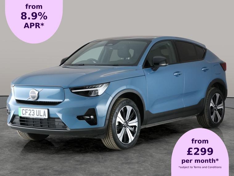 Experience the future of driving with this electric Volvo C40 Recharge SUV in stylish blue, featuring exclusive charcoal textile City Canvas interior. Enjoy the airy feel of a panoramic roof and sunroof, top-level comfort with heated seats and steering wheel, plus cutting-edge convenience with keyless entry and advanced park assist. Stay connected via Apple CarPlay and safe with adaptive cruise control, blind spot assist, and lane departure warning. Cruise in style on stunning 19in diamond cut wheels and enjoy every journey with built-in sat nav and climate pack. 2 services recorded, last serviced on 04/10/2025 at 19, 887 miles. MOT to 11/07/2026. Visit our website for service history, online valuation, full vehicle specification plus multiple images. This vehicle is VAT qualifying. Any feature/option specified here is from 3rd party data. We cannot guarantee the accuracy of any specification supplied by a 3rd party. We recommend that you physically check the specification of the vehicle on site prior to purchase. This information does not form part of the buying contract. Terms & Conditions apply. We have over 2, 000 cars available from our 10 national branches, check our website to see all our stock. Our Trustpilot rating is 4.4/5 with over 9, 000 reviews.