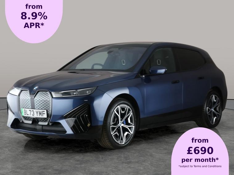 Experience the thrill of the BMW iX, finished in eye-catching blue with stunning 22in alloy wheels. Enjoy the ultimate comfort with the Comfort Pack, heated seats, four-zone climate control, and a panoramic roof. Stay entertained and connected with Apple CarPlay and an impressive Harman/Kardon sound system with upgraded audio. Advanced features include gesture control, adaptive cruise control, driving assistant, active lane assist, a head-up display, LED headlights, and a reversing camera for effortless manoeuvres. 1 service recorded, last serviced on 03/10/2025 at 6, 320 miles. MOT to 05/01/2027. Visit our website for service history, online valuation, full vehicle specification plus multiple images. Certain features listed may be available via subscription packages at extra costs, please consult with BMW for details. This vehicle is VAT qualifying. Any feature/option specified here is from 3rd party data. We cannot guarantee the accuracy of any specification supplied by a 3rd party. We recommend that you physically check the specification of the vehicle on site prior to purchase. This information does not form part of the buying contract. Terms & Conditions apply. We have over 2, 000 cars available from our 10 national branches, check our website to see all our stock. Our Trustpilot rating is 4.4/5 with over 9, 000 reviews.