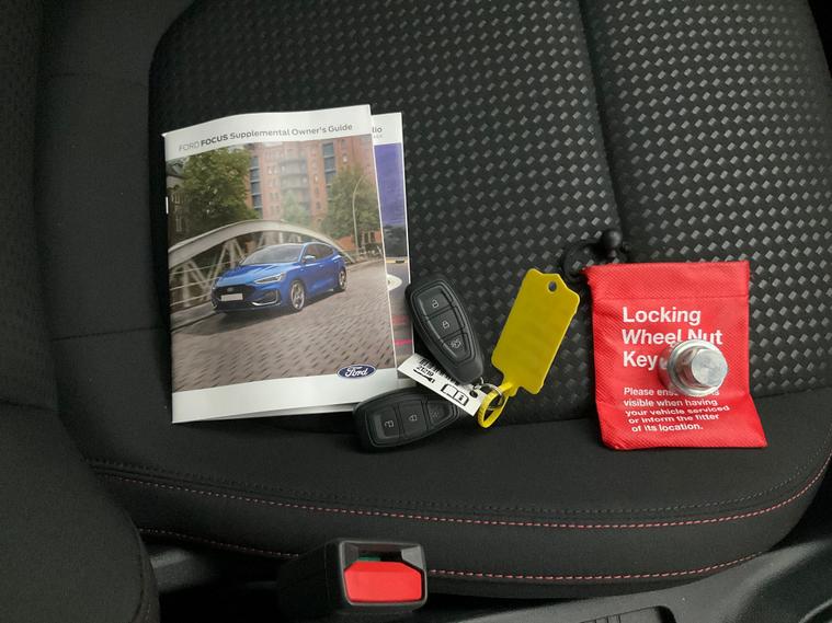 Experience driving fun with this stylish white Ford Focus ST-Line. Enjoy comfort and convenience with heated seats, keyless entry and start, and Apple CarPlay for seamless connectivity. Navigate with ease using the built-in Sat Nav, and stay safe with lane departure warning and LED daytime running lights. Dual-zone digital climate control and 17in alloy wheels complete the sporty feel of this dynamic hatchback. Test drive today and feel the difference. 1 service recorded, last serviced on 03/10/2025 at 16, 408 miles. MOT to 25/10/2026. Visit our website for service history, online valuation, full vehicle specification plus multiple images. This vehicle is VAT qualifying. Any feature/option specified here is from 3rd party data. We cannot guarantee the accuracy of any specification supplied by a 3rd party. We recommend that you physically check the specification of the vehicle on site prior to purchase. This information does not form part of the buying contract. Terms & Conditions apply. We have over 2, 000 cars available from our 10 national branches, check our website to see all our stock. Our Trustpilot rating is 4.4/5 with over 9, 000 reviews.