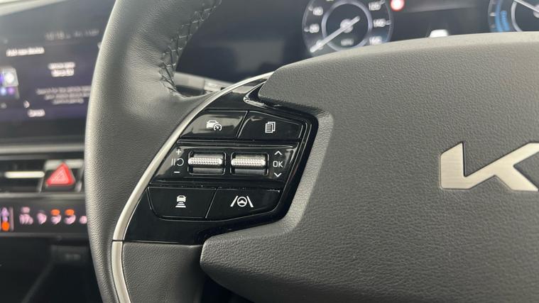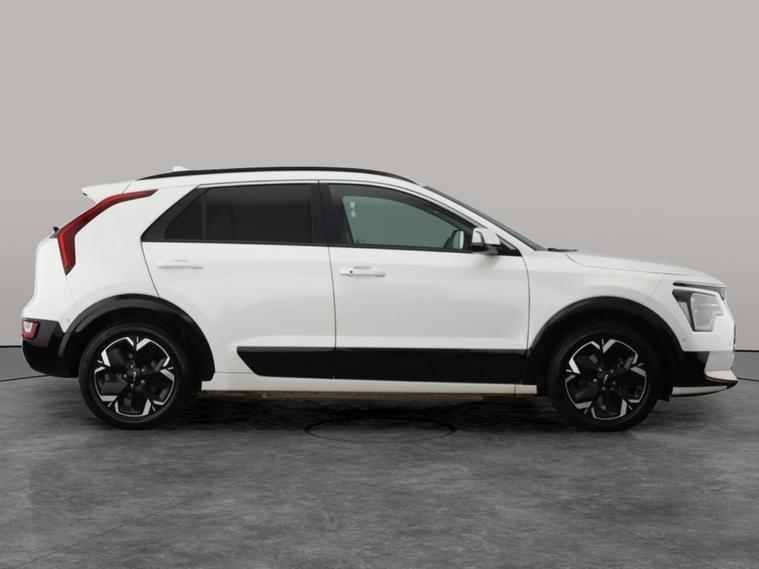 Experience the Kia Niro Electric SUV, packed with premium features including a heat pump system for improved efficiency. Enjoy the airy feel of a sunroof, stay comfortable with heated seats and a heated steering wheel, and get a clear view through the head-up display. Effortlessly park with park assist, reversing camera, and benefit from advanced safety with blind spot assist and lane departure warning. Stay connected via Apple CarPlay and Bluetooth audio, and arrive with ease thanks to sat nav and electric, memory drivers seat. Finished in stylish white. 1 service recorded, last serviced on 11/07/2025 at 14, 529 miles. MOT to 25/05/2026. Visit our website for service history, online valuation, full vehicle specification plus multiple images. This vehicle is VAT qualifying. Any feature/option specified here is from 3rd party data. We cannot guarantee the accuracy of any specification supplied by a 3rd party. We recommend that you physically check the specification of the vehicle on site prior to purchase. This information does not form part of the buying contract. Terms & Conditions apply. We have over 2, 000 cars available from our 10 national branches, check our website to see all our stock. Our Trustpilot rating is 4.4/5 with over 9, 000 reviews.