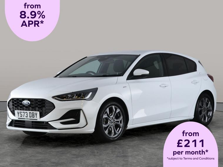 Experience driving fun with this stylish white Ford Focus ST-Line. Enjoy comfort and convenience with heated seats, keyless entry and start, and Apple CarPlay for seamless connectivity. Navigate with ease using the built-in Sat Nav, and stay safe with lane departure warning and LED daytime running lights. Dual-zone digital climate control and 17in alloy wheels complete the sporty feel of this dynamic hatchback. Test drive today and feel the difference. 1 service recorded, last serviced on 03/10/2025 at 16, 408 miles. MOT to 25/10/2026. Visit our website for service history, online valuation, full vehicle specification plus multiple images. This vehicle is VAT qualifying. Any feature/option specified here is from 3rd party data. We cannot guarantee the accuracy of any specification supplied by a 3rd party. We recommend that you physically check the specification of the vehicle on site prior to purchase. This information does not form part of the buying contract. Terms & Conditions apply. We have over 2, 000 cars available from our 10 national branches, check our website to see all our stock. Our Trustpilot rating is 4.4/5 with over 9, 000 reviews.