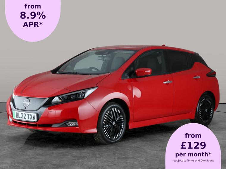 Experience electric driving in this stunning red Nissan Leaf hatchback. Enjoy top features like Apple CarPlay, an upgraded BOSE sound system, and a 360-degree surround view camera for total confidence when parking. The relaxing journey is enhanced with heated seats and smart tech like Sat Nav, Intelligent Lane Intervention, Blind Spot Assist, and Lane Departure Warning. LED headlights keep you visible, while cruise control makes long trips a breeze. Step in and feel the innovation. 2 services recorded, last serviced on 05/06/2025 at 26, 258 miles. MOT to 04/06/2026. Visit our website for service history, online valuation, full vehicle specification plus multiple images. This vehicle is VAT qualifying. Any feature/option specified here is from 3rd party data. We cannot guarantee the accuracy of any specification supplied by a 3rd party. We recommend that you physically check the specification of the vehicle on site prior to purchase. This information does not form part of the buying contract. Terms & Conditions apply. We have over 2, 000 cars available from our 10 national branches, check our website to see all our stock. Our Trustpilot rating is 4.4/5 with over 9, 000 reviews.