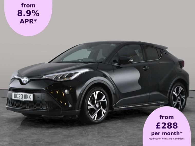 Experience the Toyota C-HR Hybrid in striking black, featuring luxurious heated seats, a panoramic Sat Nav system, and convenient keyless entry. Effortless parking is yours with front and rear sensors plus a reversing camera. Enjoy the safety of Blind Spot Assist, Adaptive Cruise Control, Lane Departure Alert, and Traffic Sign Recognition. Stay seamlessly connected with Wifi and Bluetooth audio streaming, while brilliant LED headlights add style and visibility. This hybrid SUV perfectly blends cutting-edge technology and sleek design. 3 services recorded, last serviced on 09/10/2025 at 15, 072 miles. MOT to 28/07/2026. Visit our website for service history, online valuation, full vehicle specification plus multiple images. Any feature/option specified here is from 3rd party data. We cannot guarantee the accuracy of any specification supplied by a 3rd party. We recommend that you physically check the specification of the vehicle on site prior to purchase. This information does not form part of the buying contract. Terms & Conditions apply. We have over 2, 000 cars available from our 10 national branches, check our website to see all our stock. Our Trustpilot rating is 4.4/5 with over 9, 000 reviews.