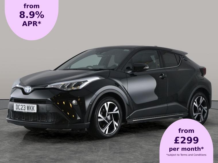 Experience the Toyota C-HR Hybrid in striking black, featuring luxurious heated seats, a panoramic Sat Nav system, and convenient keyless entry. Effortless parking is yours with front and rear sensors plus a reversing camera. Enjoy the safety of Blind Spot Assist, Adaptive Cruise Control, Lane Departure Alert, and Traffic Sign Recognition. Stay seamlessly connected with Wifi and Bluetooth audio streaming, while brilliant LED headlights add style and visibility. This hybrid SUV perfectly blends cutting-edge technology and sleek design. 3 services recorded, last serviced on 09/10/2025 at 15, 072 miles. MOT to 28/07/2026. Visit our website for service history, online valuation, full vehicle specification plus multiple images. Any feature/option specified here is from 3rd party data. We cannot guarantee the accuracy of any specification supplied by a 3rd party. We recommend that you physically check the specification of the vehicle on site prior to purchase. This information does not form part of the buying contract. Terms & Conditions apply. We have over 2, 000 cars available from our 10 national branches, check our website to see all our stock. Our Trustpilot rating is 4.4/5 with over 9, 000 reviews.