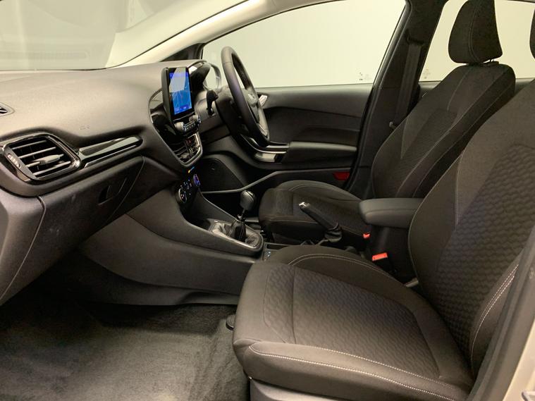 This stylish Ford Fiesta hatchback shines with its smart black cloth interior featuring metal grey stitching and impressive 16in Titanium design alloy wheels. Enjoy the convenience of Ford SYNC3 for seamless connectivity, built-in Sat Nav, and keyless start for effortless getaways. Safety stands out with LED headlights and traffic sign recognition, keeping you confident wherever you go. Cruise control and air conditioning ensure every drive is comfortable and relaxed. A superb all-rounder ready for your next adventure. 2 services recorded, last serviced on 10/10/2025 at 25, 411 miles. MOT to 06/09/2026. Visit our website for service history, online valuation, full vehicle specification plus multiple images. Any feature/option specified here is from 3rd party data. We cannot guarantee the accuracy of any specification supplied by a 3rd party. We recommend that you physically check the specification of the vehicle on site prior to purchase. This information does not form part of the buying contract. Terms & Conditions apply. We have over 2, 000 cars available from our 10 national branches, check our website to see all our stock. Our Trustpilot rating is 4.4/5 with over 9, 000 reviews.