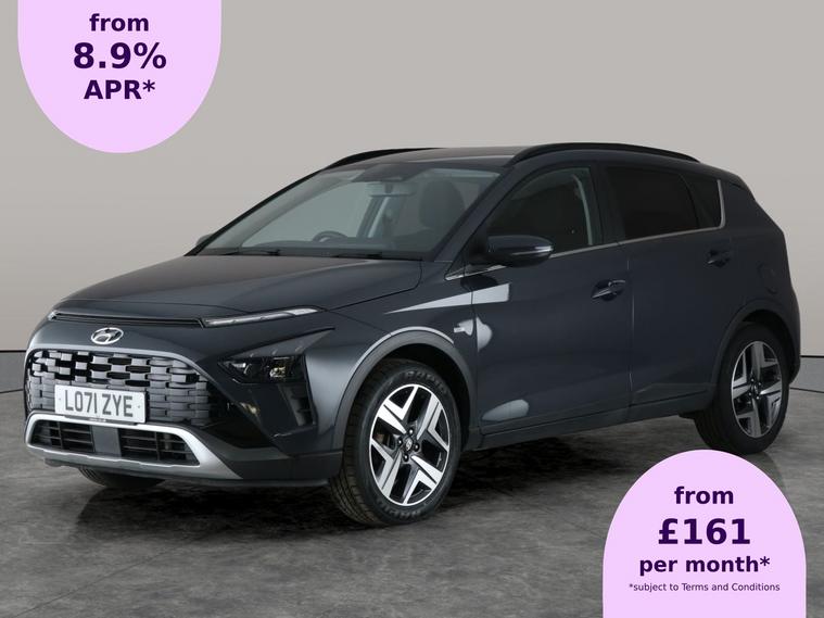 Discover the stylish grey Hyundai Bayon, a compact SUV packed with standout features. Enjoy the luxury of heated seats and a heated steering wheel for those chilly mornings. Stay on course with sat nav and drive confidently with lane departure warning. Experience seamless connectivity using Apple CarPlay, Bluetooth audio streaming, and a wireless charger. The drive is enhanced by selectable driving modes and cruise control, while striking 17in alloy wheels and LED headlights complete the dynamic look. 3 services recorded, last serviced on 07/02/2025 at 15, 789 miles. MOT to 17/02/2026. Visit our website for service history, online valuation, full vehicle specification plus multiple images. Any feature/option specified here is from 3rd party data. We cannot guarantee the accuracy of any specification supplied by a 3rd party. We recommend that you physically check the specification of the vehicle on site prior to purchase. This information does not form part of the buying contract. Terms & Conditions apply. We have over 2, 000 cars available from our 10 national branches, check our website to see all our stock. Our Trustpilot rating is 4.4/5 with over 9, 000 reviews.