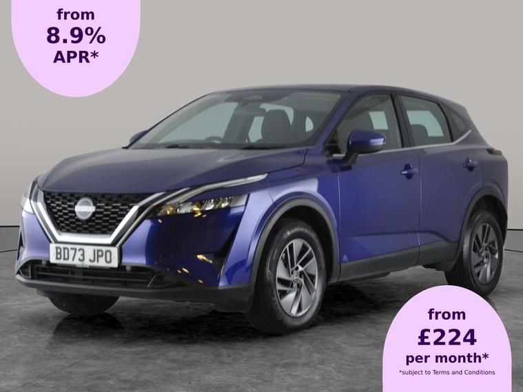 Discover the Nissan Qashqai in striking blue, offering a smooth automatic hybrid drive. Enjoy effortless journeys with Adaptive Cruise Control, Apple CarPlay, and handy Keyless Entry. Navigate confidently with LED headlights, Reversing Camera, and front and rear parking sensors. Stay safe with Blind Spot Assist, Intelligent Lane Intervention, and Lane Departure Warning. Dual Zone Digital Climate Control keeps you comfortable, while Bluetooth audio streaming keeps you entertained on every adventure. 2 services recorded, last serviced on 08/08/2025 at 36, 104 miles. MOT to 30/09/2026. Visit our website for service history, online valuation, full vehicle specification plus multiple images. This vehicle is VAT qualifying. Any feature/option specified here is from 3rd party data. We cannot guarantee the accuracy of any specification supplied by a 3rd party. We recommend that you physically check the specification of the vehicle on site prior to purchase. This information does not form part of the buying contract. Terms & Conditions apply. We have over 2, 000 cars available from our 10 national branches, check our website to see all our stock. Our Trustpilot rating is 4.4/5 with over 9, 000 reviews.