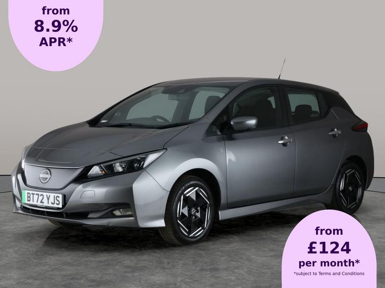 Experience electric driving with this stylish grey Nissan Leaf hatchback. Enjoy seamless connectivity with Apple CarPlay and peace of mind thanks to intelligent features like a reversing camera, lane departure warning, and blind spot assist. Stay relaxed with climate control and cruise control, while keyless start adds a touch of modern convenience. A perfect choice for comfort and technology in an eco-friendly package. 1 service recorded, last serviced on 17/10/2025 at 22, 147 miles. MOT to 17/10/2026. Visit our website for service history, online valuation, full vehicle specification plus multiple images. This vehicle is VAT qualifying. Any feature/option specified here is from 3rd party data. We cannot guarantee the accuracy of any specification supplied by a 3rd party. We recommend that you physically check the specification of the vehicle on site prior to purchase. This information does not form part of the buying contract. Terms & Conditions apply. We have over 2, 000 cars available from our 10 national branches, check our website to see all our stock. Our Trustpilot rating is 4.4/5 with over 9, 000 reviews.