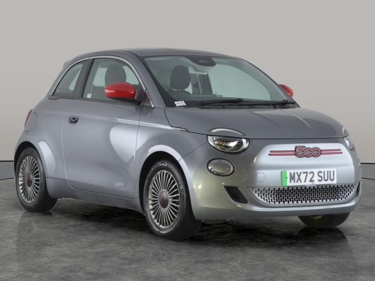 Discover the stylish Fiat 500e 42kWh, finished in sleek grey with striking 16in alloy wheels. Experience seamless journeys with Sat Nav, cruise control, and lane departure warning for extra safety. Enjoy effortless keyless start, digital climate control, and crisp digital displays. Stay connected with Bluetooth audio streaming and convenient charging leads included. This electric hatchback is ready to impress on every drive. 1 service recorded, last serviced on 20/10/2025 at 11, 509 miles. MOT to 20/10/2026. Visit our website for service history, online valuation, full vehicle specification plus multiple images. Any feature/option specified here is from 3rd party data. We cannot guarantee the accuracy of any specification supplied by a 3rd party. We recommend that you physically check the specification of the vehicle on site prior to purchase. This information does not form part of the buying contract. Terms & Conditions apply. We have over 2, 000 cars available from our 10 national branches, check our website to see all our stock. Our Trustpilot rating is 4.4/5 with over 9, 000 reviews.