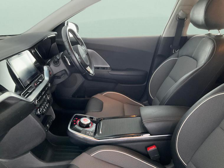 Experience the future with this sleek black Kia Niro Electric SUV. Enjoy high-tech comforts like adaptive cruise control, Apple CarPlay, keyless entry, and a reversing camera. Relax with luxurious leather seats, digital climate control, and convenient keyless start. Stay safe with lane departure warning, and let LED daytime running lights brighten every drive. With 17in alloy wheels and paddle shift, this Niro blends style, safety, and innovationperfect for your next adventure. 4 services recorded, last serviced on 30/05/2025 at 42, 524 miles. MOT to 22/10/2026. Visit our website for service history, online valuation, full vehicle specification plus multiple images. This vehicle is VAT qualifying. Any feature/option specified here is from 3rd party data. We cannot guarantee the accuracy of any specification supplied by a 3rd party. We recommend that you physically check the specification of the vehicle on site prior to purchase. This information does not form part of the buying contract. Terms & Conditions apply. We have over 2, 000 cars available from our 10 national branches, check our website to see all our stock. Our Trustpilot rating is 4.4/5 with over 9, 000 reviews.