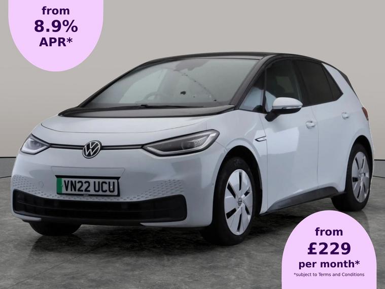 Discover the Volkswagen ID.3, an advanced electric hatchback in sleek white. Enjoy hassle-free journeys with Adaptive Cruise Control and Blind Spot Assist for maximum confidence. The Assistance Pack adds a further layer of reassurance, while front and rear parking sensors make tight spots a breeze. Stay connected on every trip with Bluetooth, and benefit from bright LED daytime running lights for enhanced visibility. Includes charging leads for convenience at home or on the go. 2 services recorded, last serviced on 14/06/2025 at 29, 495 miles. MOT to 13/06/2026. Visit our website for service history, online valuation, full vehicle specification plus multiple images. This vehicle is VAT qualifying. Any feature/option specified here is from 3rd party data. We cannot guarantee the accuracy of any specification supplied by a 3rd party. We recommend that you physically check the specification of the vehicle on site prior to purchase. This information does not form part of the buying contract. Terms & Conditions apply. We have over 2, 000 cars available from our 10 national branches, check our website to see all our stock. Our Trustpilot rating is 4.4/5 with over 9, 000 reviews.