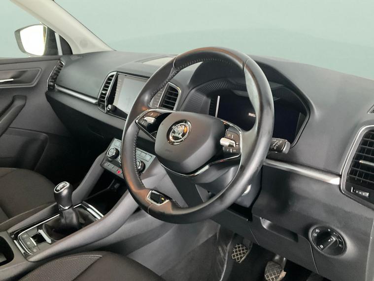 Step into style with this black Skoda Karoq, featuring striking 17in alloy wheels and advanced LED headlights for a modern touch. Enjoy seamless connectivity with Apple CarPlay, SmartLink and Bluetooth, plus convenient keyless entry and keyless start. Stay comfortable all year round with dual zone digital climate control and air conditioning. The integrated sat nav keeps you on track, while the digital cockpit puts essential information right in front of you. A superb SUV for every journey. 1 service recorded, last serviced on 22/10/2025 at 4, 751 miles. MOT to 22/10/2026. Visit our website for service history, online valuation, full vehicle specification plus multiple images. This vehicle is VAT qualifying. Any feature/option specified here is from 3rd party data. We cannot guarantee the accuracy of any specification supplied by a 3rd party. We recommend that you physically check the specification of the vehicle on site prior to purchase. This information does not form part of the buying contract. Terms & Conditions apply. We have over 2, 000 cars available from our 10 national branches, check our website to see all our stock. Our Trustpilot rating is 4.4/5 with over 9, 000 reviews.