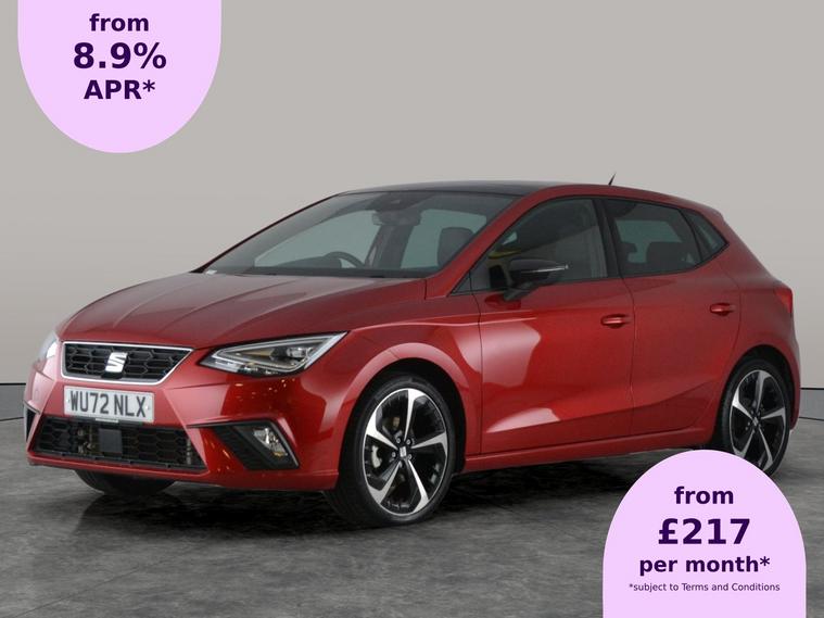 Discover the sporty Seat Ibiza FR Sport in vibrant red, featuring a sleek panoramic sunroof, adaptive cruise control, and an immersive upgraded sound system. Enjoy seamless connectivity with Apple CarPlay and Bluetooth audio, while LED headlights light up every drive. Effortless keyless entry and a digital cockpit offer added convenience, and dual zone digital climate control keeps everyone comfortable. Experience dynamic driving with selectable modes and built-in sat nav to guide your journeys. 2 services recorded, last serviced on 24/10/2025 at 18, 661 miles. MOT to 29/09/2026. Visit our website for service history, online valuation, full vehicle specification plus multiple images. Any feature/option specified here is from 3rd party data. We cannot guarantee the accuracy of any specification supplied by a 3rd party. We recommend that you physically check the specification of the vehicle on site prior to purchase. This information does not form part of the buying contract. Terms & Conditions apply. We have over 2, 000 cars available from our 10 national branches, check our website to see all our stock. Our Trustpilot rating is 4.4/5 with over 9, 000 reviews.