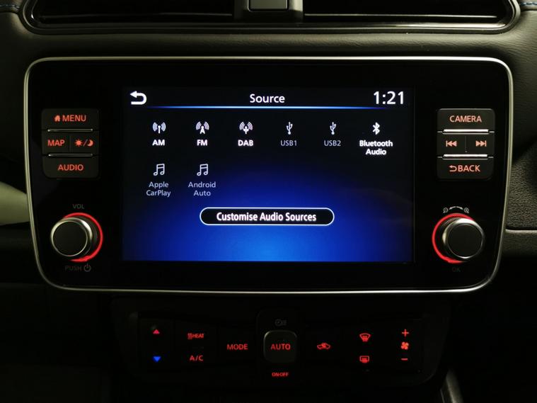 Experience the Nissan Leaf hatchback with premium features like a BOSE upgraded sound system, heated seats, and an advanced surround view with a 360-degree camera for effortless parking. Enjoy seamless connectivity through Apple CarPlay and stay on track with integrated sat nav. LED headlights light your way, while intelligent lane intervention, blind spot assist, and lane departure warning provide extra peace of mind. Drive in comfort and confidence with this feature-packed electric automatic. 3 services recorded, last serviced on 15/10/2025 at 15, 390 miles. MOT to 07/09/2026. Visit our website for service history, online valuation, full vehicle specification plus multiple images. This vehicle is VAT qualifying. Any feature/option specified here is from 3rd party data. We cannot guarantee the accuracy of any specification supplied by a 3rd party. We recommend that you physically check the specification of the vehicle on site prior to purchase. This information does not form part of the buying contract. Terms & Conditions apply. We have over 2, 000 cars available from our 10 national branches, check our website to see all our stock. Our Trustpilot rating is 4.4/5 with over 9, 000 reviews.