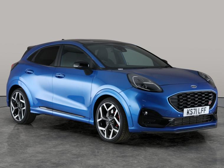 Experience sporty style and advanced tech with this Ford Puma ST. Enjoy the luxury of heated Alcantara seats, a heated steering wheel, and keyless entry. The Driver Assistance Pack boosts confidence on the road, while the ST Performance Pack delivers a dynamic drive. Effortlessly load your boot with the handsfree power tailgate. With Apple CarPlay, Ford SYNC3, WiFi, Bang & Olufsen upgraded sound, LED headlights, and a reversing camera, this blue SUV combines fun, comfort, and innovation in every journey. 1 service recorded, last serviced on 24/01/2025 at 20, 940 miles. MOT to 28/10/2026. Visit our website for service history, online valuation, full vehicle specification plus multiple images. Any feature/option specified here is from 3rd party data. We cannot guarantee the accuracy of any specification supplied by a 3rd party. We recommend that you physically check the specification of the vehicle on site prior to purchase. This information does not form part of the buying contract. Terms & Conditions apply. We have over 2, 000 cars available from our 10 national branches, check our website to see all our stock. Our Trustpilot rating is 4.4/5 with over 9, 000 reviews.