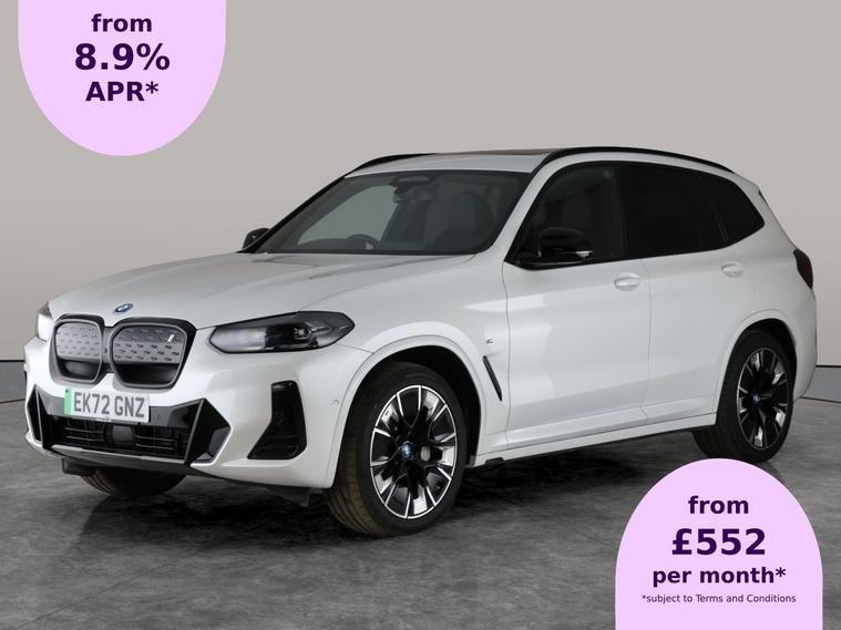 Experience luxury and innovation with this white BMW iX3 SUV. Enjoy a breathtaking panoramic roof, advanced gesture control, and a premium Harman/Kardon sound system for your journeys. Stay in control with adaptive cruise, head-up display, and active lane assist, while Parking Assistant Plus and surround view make manoeuvring effortless. Convenience is heightened with keyless entry, Apple CarPlay integration, and crisp LED headlights for a modern, sophisticated drive. 1 service recorded, last serviced on 22/10/2025 at 12, 868 miles. MOT to 27/09/2026. Visit our website for service history, online valuation, full vehicle specification plus multiple images. Certain features listed may be available via subscription packages at extra costs, please consult with BMW for details. Any feature/option specified here is from 3rd party data. We cannot guarantee the accuracy of any specification supplied by a 3rd party. We recommend that you physically check the specification of the vehicle on site prior to purchase. This information does not form part of the buying contract. Terms & Conditions apply. We have over 2, 000 cars available from our 10 national branches, check our website to see all our stock. Our Trustpilot rating is 4.4/5 with over 9, 000 reviews.