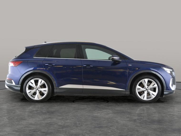 Elevate your drive with this blue Audi Q4 E-tron S Line, equipped with the sought-after Technology and Comfort & Sound Packages. Enjoy crystal-clear music with the upgraded sound system, stay connected through Apple CarPlay, and experience convenience with keyless entry. Youll love the futuristic head-up display, heated sports seats, and immersive MMI Navigation Plus. LED headlights, a reversing camera, and advanced lane departure warning add to your safety and comfort. The perfect electric SUV for those who want refinement and innovation. 2 services recorded, last serviced on 31/10/2025 at 47, 337 miles. MOT to 26/10/2026. Visit our website for service history, online valuation, full vehicle specification plus multiple images. Certain features listed may be available via subscription packages at extra costs, please consult with Audi for details. This vehicle is VAT qualifying. Any feature/option specified here is from 3rd party data. We cannot guarantee the accuracy of any specification supplied by a 3rd party. We recommend that you physically check the specification of the vehicle on site prior to purchase. This information does not form part of the buying contract. Terms & Conditions apply. We have over 2, 000 cars available from our 10 national branches, check our website to see all our stock. Our Trustpilot rating is 4.4/5 with over 9, 000 reviews.
